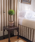 Handmade Son Mai lacquer side table featuring Orientalist detailing to its feet, inspired by traditional Chinese furniture.