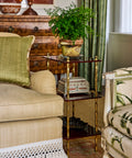 The Large Freddie Table features three tiers with brass bamboo style legs and glossy finish. Handmade in Vietnam by master craftsmen using traditional Son Mai lacquer techniques.