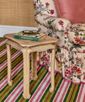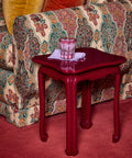 A square lacquer side table with a silhouette lending itself to the East Asian Chinoiserie style. Designed in collaboration with KRB, bringing Kate Rheinstein Brodsky's uniquely charismatic and colourful perspective to timeless designs. Handmade in Vietnam by master craftsmen using traditional Son Mai lacquer techniques.
